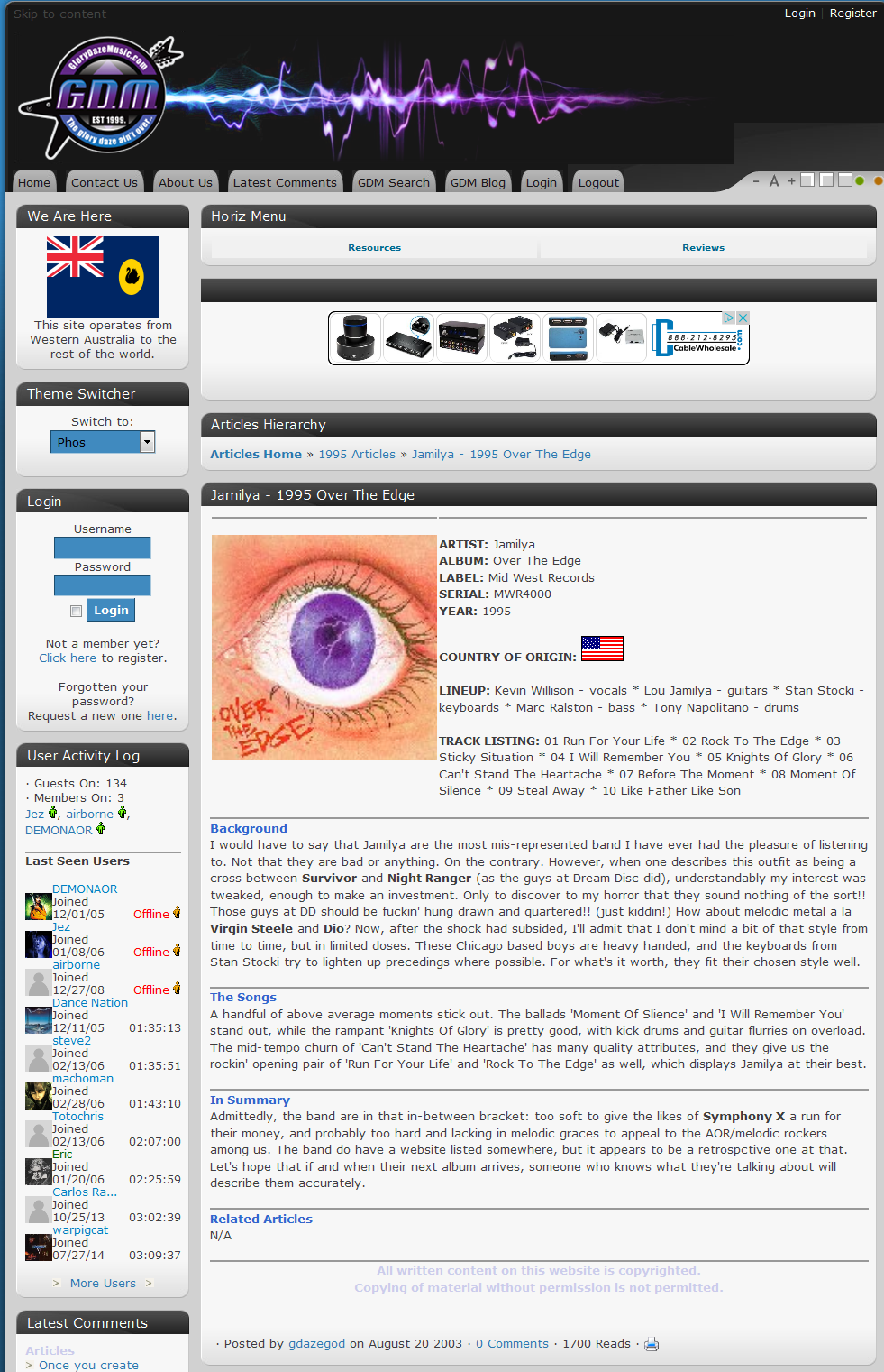 Glory Daze Music Review August 20. 2003
